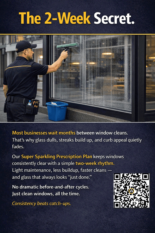 If clean windows matter to your business, we’ll take care of them properly — at ground level, on schedule, and without disruption.
