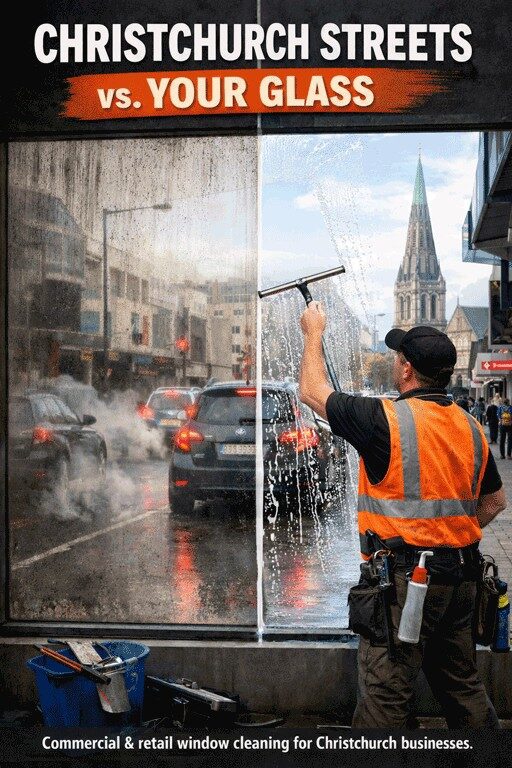 City glass doesn’t just get dirty — it gets polluted. Diesel fumes, brake dust, and road grime cling to windows, leaving black film that rain won’t touch. We use commercial-grade solutions designed for Christchurch streets, restoring true clarity — not just a quick rinse.